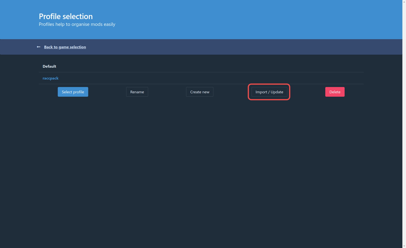 After Selecting the game, Click "Import/Update"