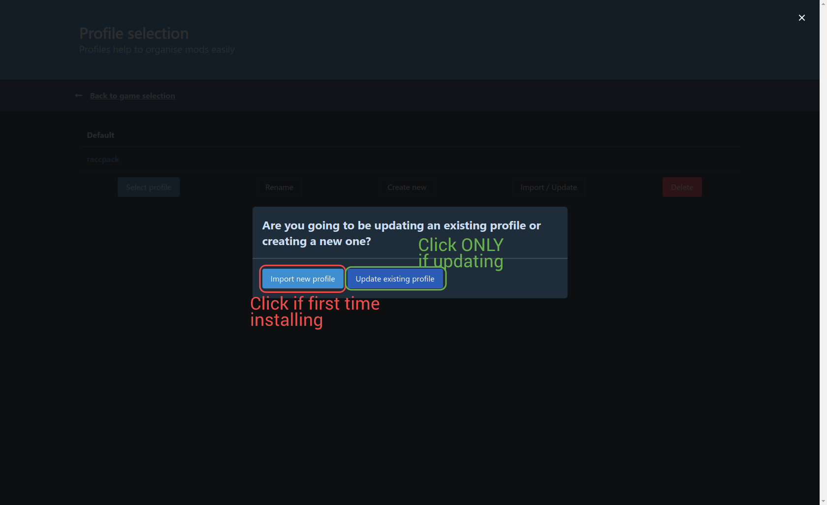 Click Import new profile if this is the first time installing. If you are updating, click Update Existing Profile.